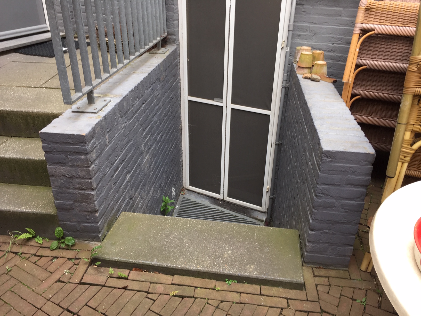 Om het water buiten te houden, word je ook inventief. Hanneke: “Als er nu een dreiging is, stoppen we het schrobputje vol met dweilen en leggen we er een zware steen en zandzakken op. Zo is het ons tot nu toe gelukt om de keuken droog te houden.”